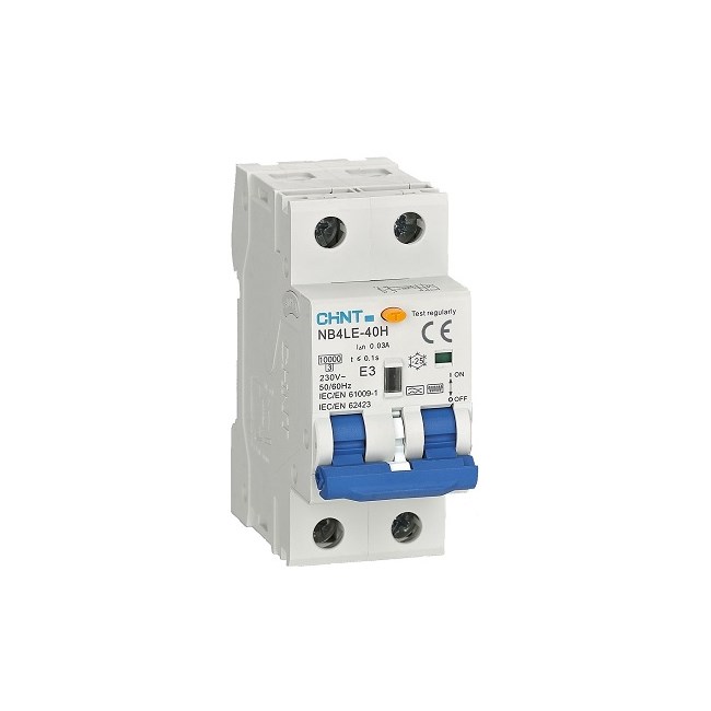 F-type elektronisk jordfeilautomat NB4LE 30mA, 2P 2modul.