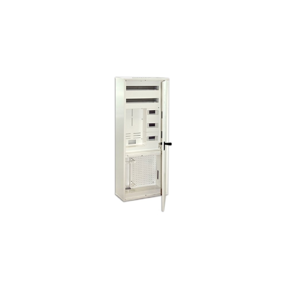 Boligsentral med 2x21 + 3x7 moduler samt målerfelt. Skapet har i tillegg et svakstrømsfelt i nedre del av skapet. Døren har WiFi felt for signalgjennomgang av trådløse signaler. Nemko godkjent i.h.t Tavlenormen EN60439 for 3x80A IT/230V/50Hz og 4x80A TN/400V/50Hz