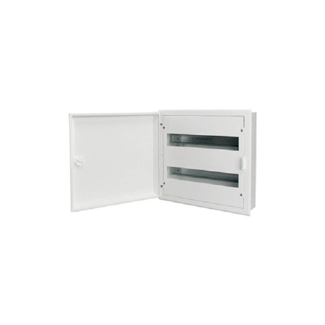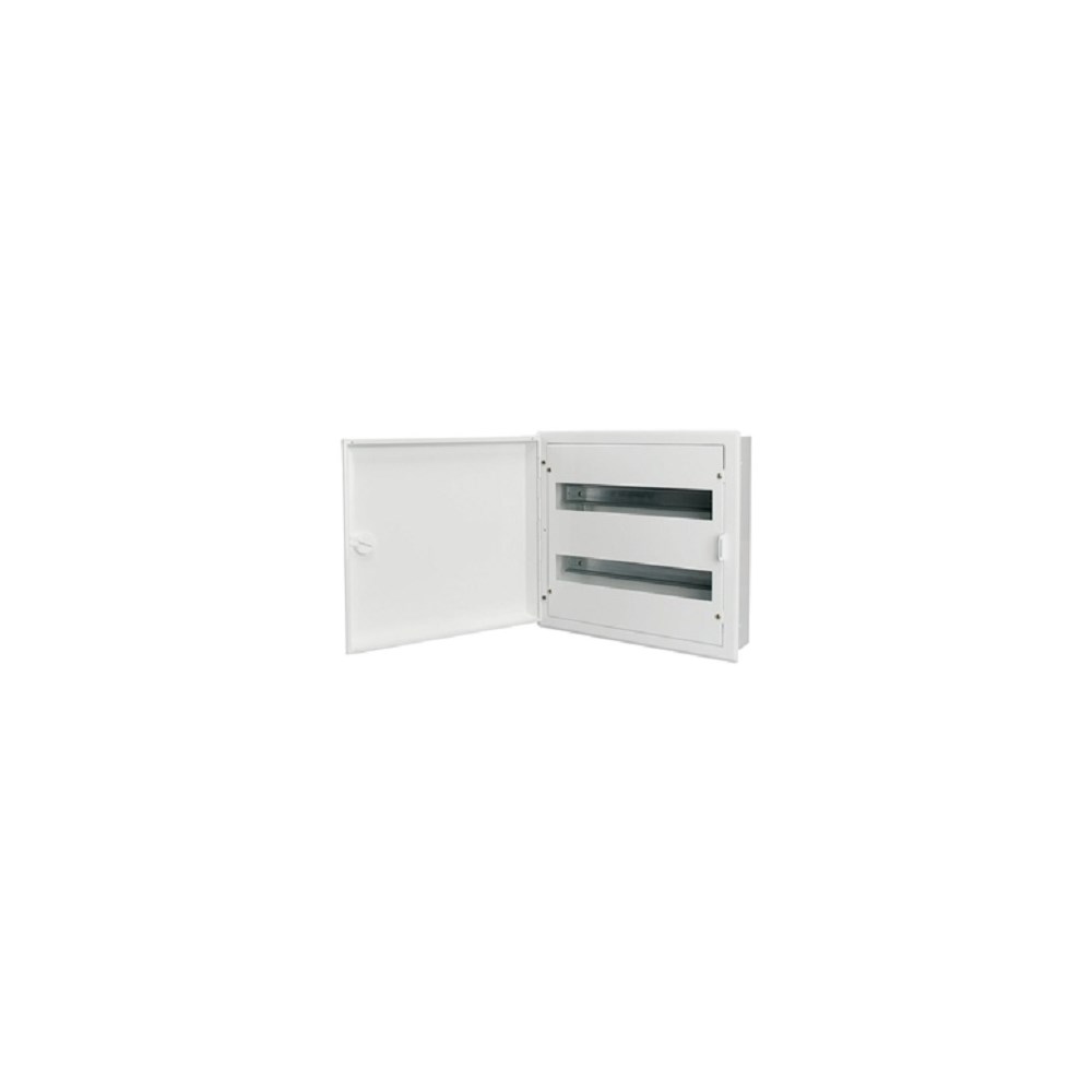 I-box - Leveres komplett med hvit dør i stål og frontplater/ramme for på vegg og innfelt montasje på ett el.nr. - Hvite og sotfargede dører, underdeler, frontplater og montasjeplater kan også leveres separat. - IP 2 x C-utførelse - Godkjent iht. EN 62208 - Valgri høyre- eller venstrehengsling. Svekkinger i topp og bunn: 1 x 40/32 mm, 1 x 25 mm, 1 x 20 mm membrannippel, 14 x 16 mm membrannippel