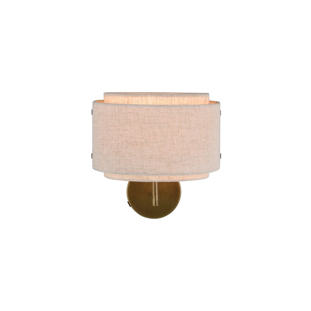Takai vegglampe fra Studio Mavro//Lefèvre av Sofie Lefèvre har en stoffskjerm med en vakker form som inviterer deg til å se på den fra mange forskjellige vinkler. Kombinasjonen av lin-lin-skyggen og den polerte messingbasen skaper et veldig mykt og varmt formspråk