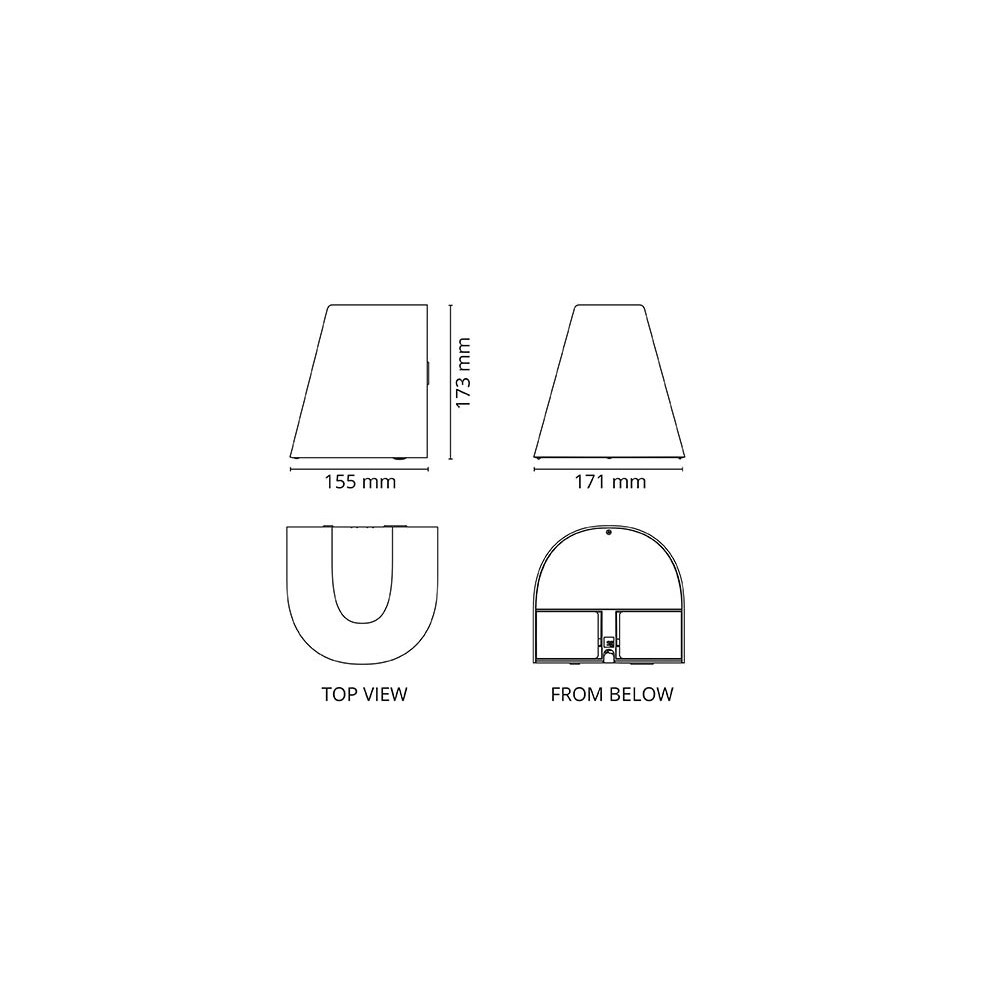 Moderne veggarmatur for utendørs montering produsert i trykkstøpt, pulverlakkert aluminium med sort, hvit eller grafitt overflate. Skjerm i UV-stabilisert, opal polykarbonat. Armaturen har integrert LED-lyskilde med 95 graders lysspredning (nedlys). Finnes i ulike versjoner med opp-/nedlys eller kun nedlys. Begge kan leveres med 2 stk stikkontakter skjult bak vippelokk med automatisk lukking og skumringsrelé. 10 års korrosjonsgaranti, beskyttelsesklasse IP44. Passer til Breeam prosjekter.