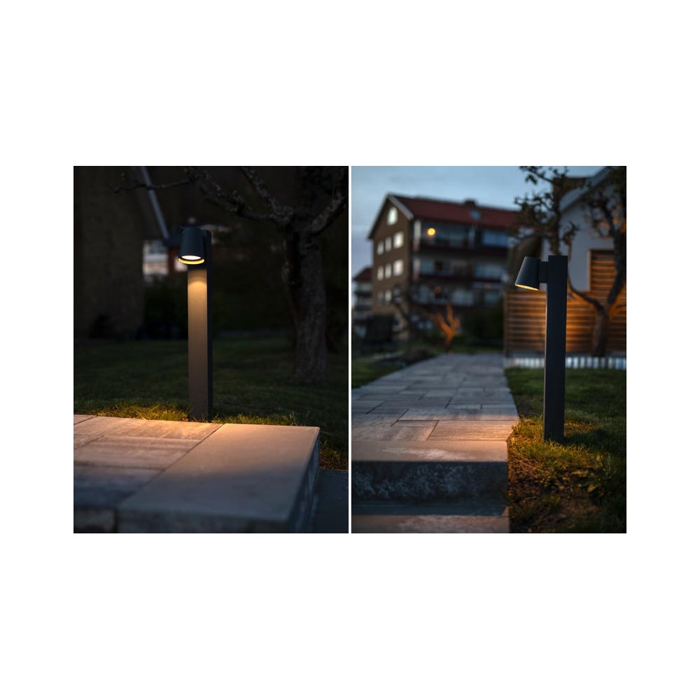Stilren og slitesterk pillar med asymmetrisk lysbilde som lyser opp bakken og gangveien. Integrert driver med stillbart lysnivå via DIP-bryter for direkte tilkobling til 230V. IP54- og IK09-klassifisering med slitesterk pulverlakkering for røffe miljøer. Leveres med en komplett pakke for innstøping i betong. Suppler gjerne monteringen med våre uteledninger IP68.