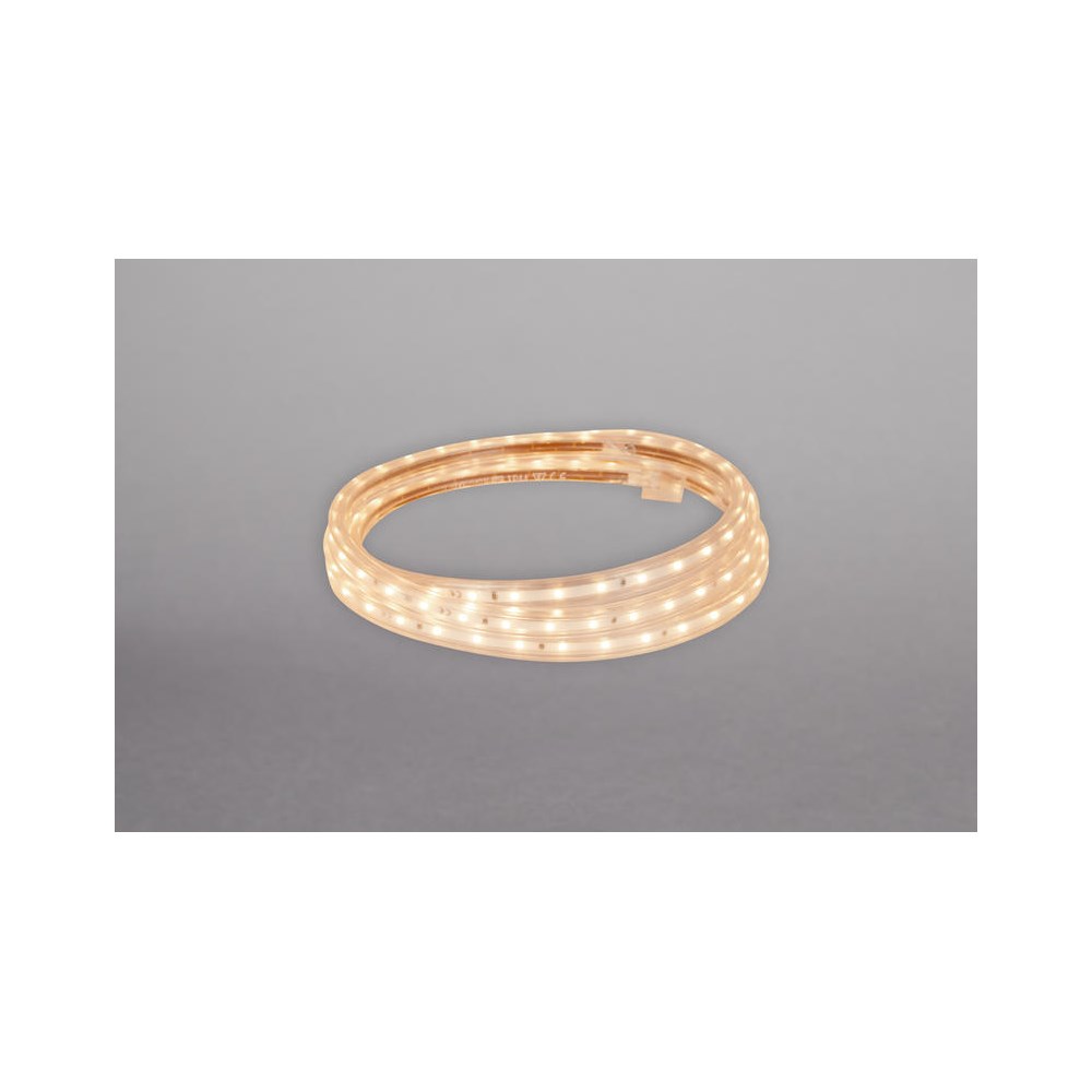 Tilkoblingskit til 230V LEDstrip HV FDIM IP44. Inneholder tilkoblingskabel 80cm med jordet støpsel og fasedimbar DC-konverter, endeavslutning, to krympeslanger og lim.