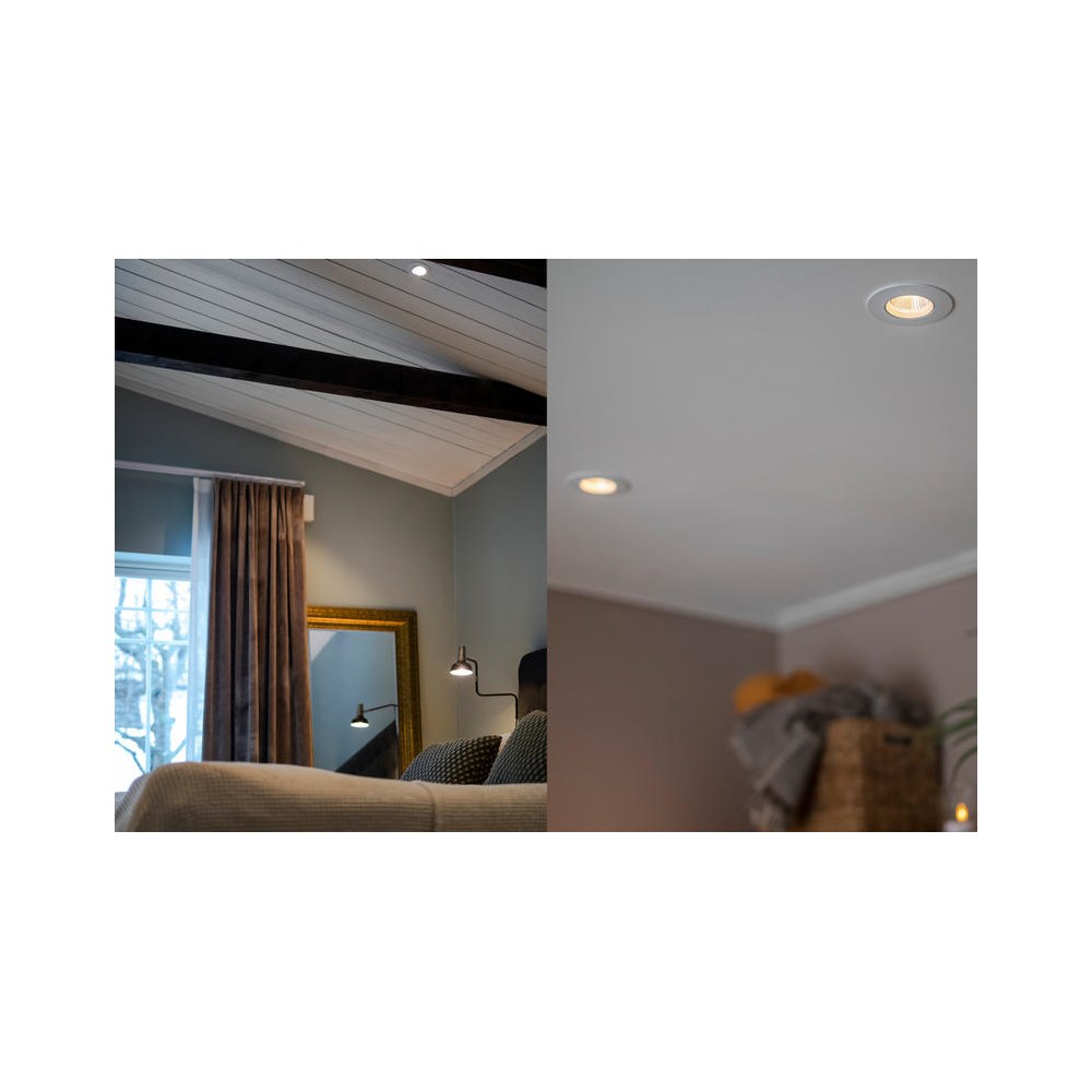 Praktisk 6-pakning for enklere transport og færre pakker. Downlight laget for en bærekraftig fremtid – via et modulsystem kan du enkelt ta armaturen fra hverandre og spare tid når den skal vedlikeholdes. Lavtbyggende, beregnet for montering i 28 mm stendere og direkte mot isolasjon. Moderne LED- og reflektorteknologi med godt avblendet lysbilde og høy lysfluks. Kan tiltes 30°, noe som gjør den perfekt for vinklede tak. Svært god fargegjengivelse, Ra>95. Driver med lokk som verktøyfritt tilpasses kabel eller 16 mm K-rør. 3-polet hurtigkobling for viderekobling samt strekkavlastning. Armaturen kan dimmes med de vanligste dimmerne på markedet.