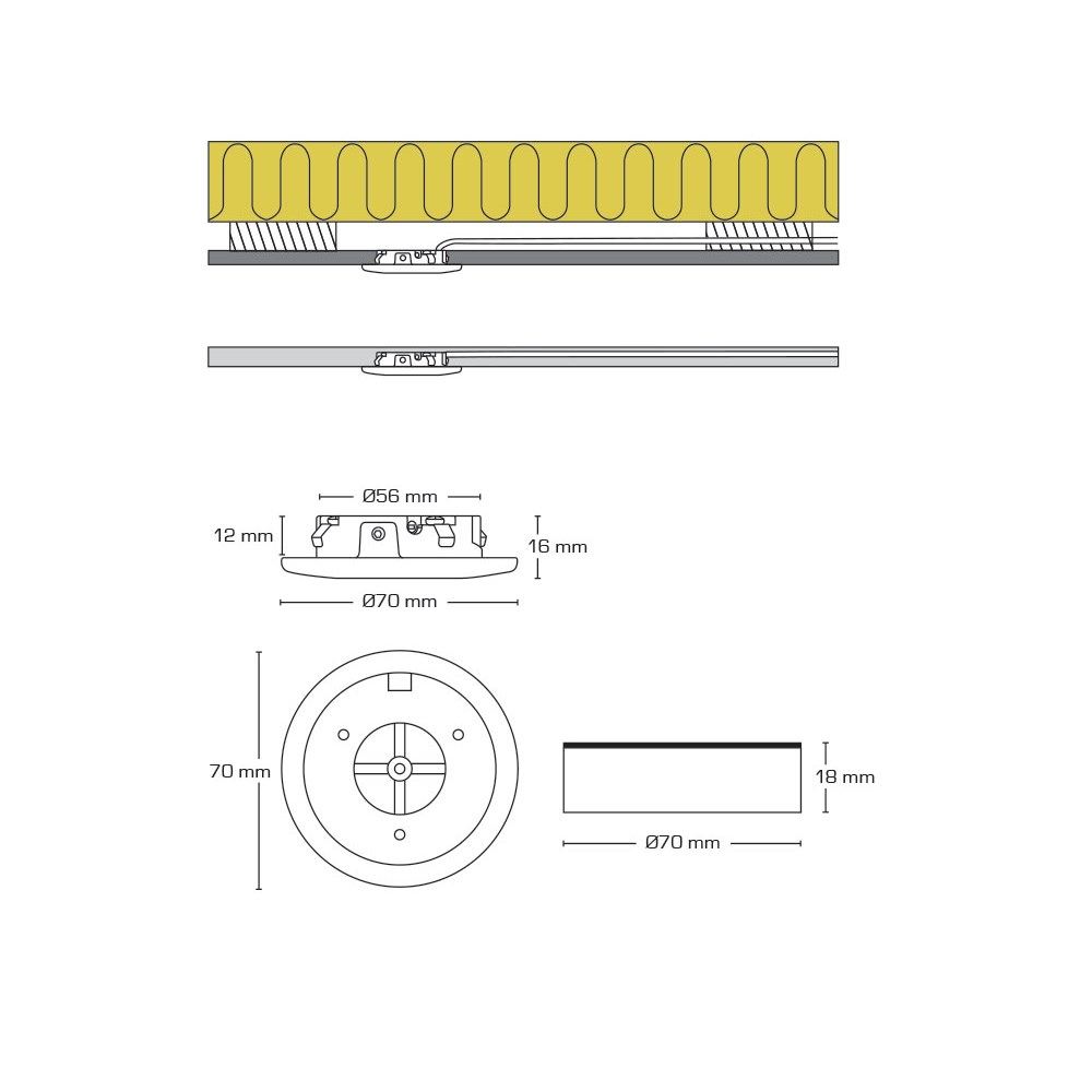 Sofia er en LED mini downlight som er godkjent for direkte montering i isolasjon og brennbart materiale. Enkel montering i eksisterende installasjoner ved hjelp av integrert monteringsklemme (maks. 2x0,75 mm2). Ideell for montering under overskap i eksisterende utskjæringer eller ved bruk av utenpåliggende ring (tilbehør). Monteringshøyden på kun 12 mm gjør det mulig å montere Sofia mini downlight de fleste steder. Leveres inkl. 3 meter kabel