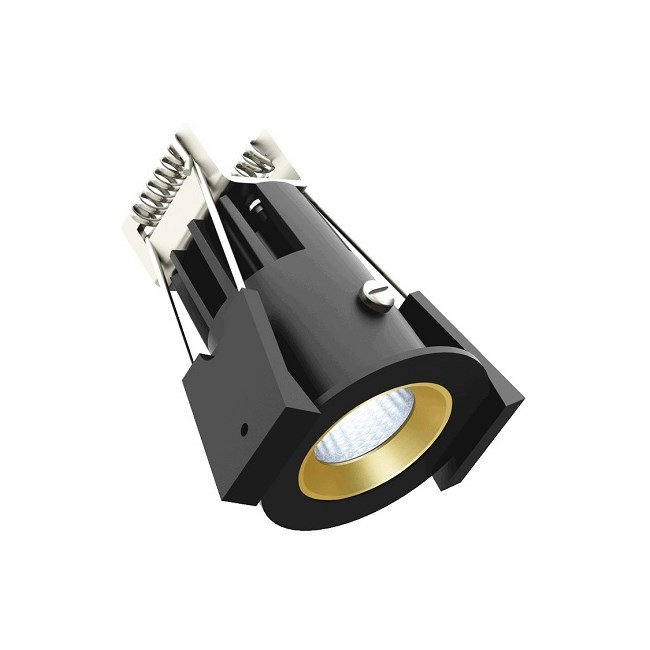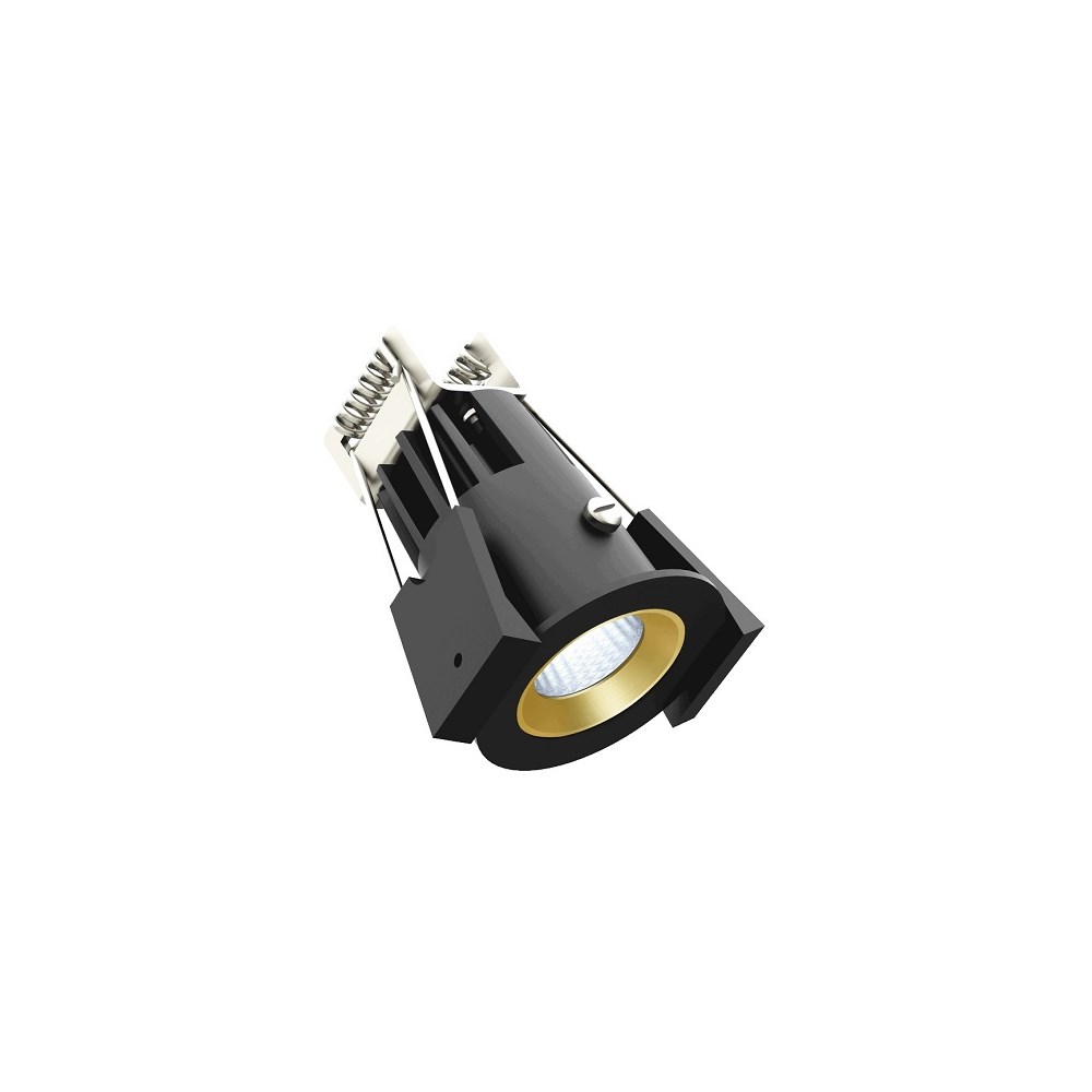 Downlight Strada 35 LV-C 6,6W 475 lumen 500mA 2700K dim ws Matt.Sort/Gull IP44l. 500MA driver inklusive. fra -20°C / +45°C.Dimbar .hulltagning Ø 35mm byggehøyde 60mm.Levetid 70000 7 års garanti .