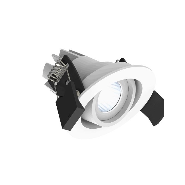 Downlight Fluxe 50 justerbar LV 350ma 4,5W 375 Lumen 2700 kelvin Triac dim cs  83 Lm/W  .driver 350mA bestilles på eget nummer. fra -20°C / +45°C. hulltagning Ø 50mm byggehøyde 50mm utvendig mål 55mm .Levetid 70000 7 års garanti.