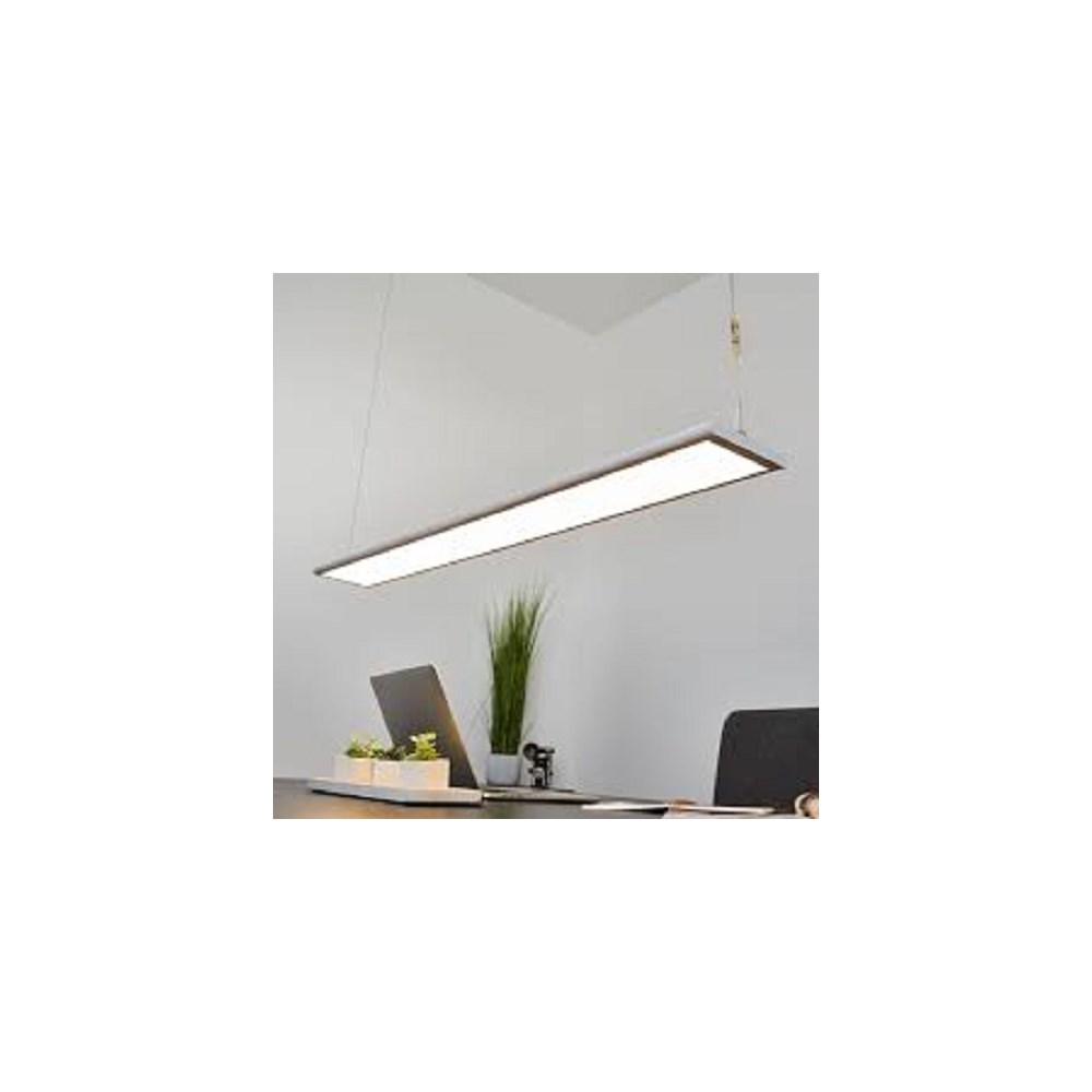 Hvit Samu LED-kontorpendellampe med direkte-indirekte lysavgivelse og varmhvitt lys Samu-kontorpendellampen har dimbare LED-lamper, slik at lysintensiteten kan reguleres med en ekstern dimmer. Den gir også en belysning som er tilpasset skjermarbeidsplasser, ettersom lyset sendes ut både direkte og indirekte, med 60 prosent av lyset rettet nedover og 40 prosent oppover. Kombinasjonen av direkte og indirekte lys gir et spesielt jevnt lysbilde og maksimal avlastning for øynene, slik at man kan konsentrere seg om arbeidet på kontoret i lengre perioder.
