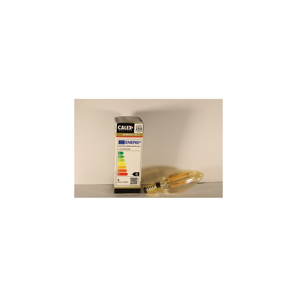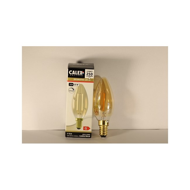 LED Mignon FLM gold. Dimbar. 3,5W. 2100K. E14 sokkel. 250 lumen. Ra>80. Størrelse Ø35x98mm. Levetid 15 000 timer / L70. Energiklasse G.