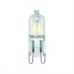 Halogenpære for normal spenning. G9 stiftsokkel. Brukes der det er høye tempraturer, tåler 300 °C. Kan dimmes. Fargetemp: 2700K. Levetid 2000 timer.