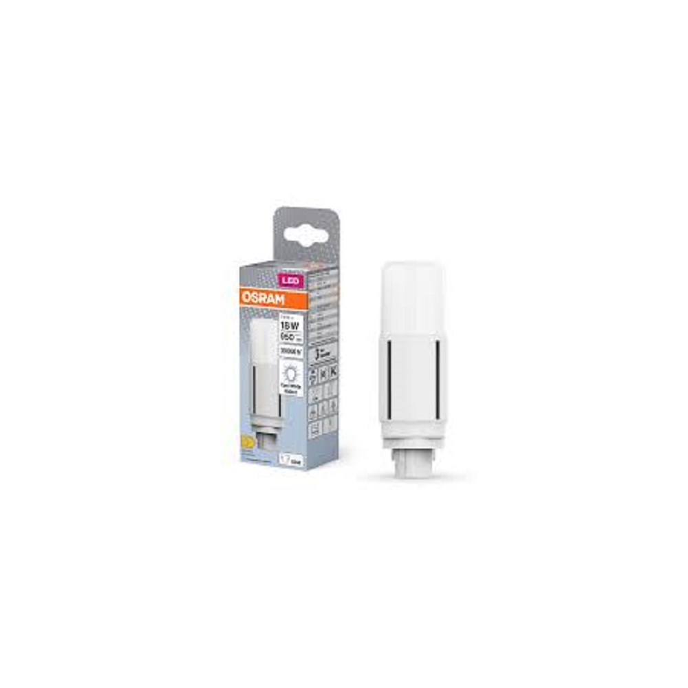 LEDVANCE Dulux LED D Vertikal EM med G24d 2-pin sokkel som erstatter tradisjonelle kompaktlysrør. Drift med konvensjonell forkobling (CCG) og eller nettspenning (AC). Kun egnet for vertikal påføring. En rask, enkel og sikker utskifting uten behov for ny kabling. Kompaktrør med 2-stift G24d sokkel, IP20, ingen kvikksølv og 30 000 timer levetid. Har også mulighet for direkte 230 V drift Teknisk info: Ikke dimbar, 870 lm, Matt, 7.5 Watt tilsvarende 18 Watt tradisjonell, 3000 Kelvin, G24d sokkel, 30 000 timer, Value Class Anbefalte bruksområder er bl.a generell belysning med temperaturområder fra -20 til + 45°C, supermarkeder, kjøpesenter, gang og korridorer, hotell og restauranter og lignende.