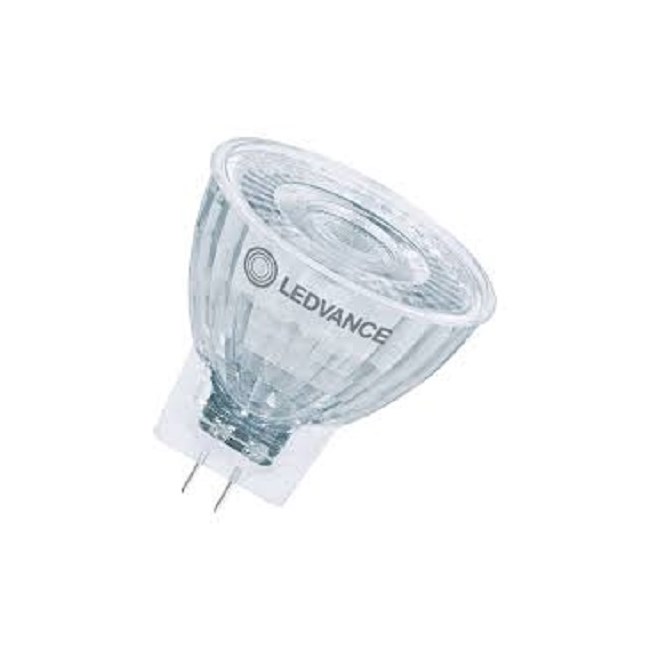 LEDVANCE PERFORMANCE MR11. Lavvolts (12V) LED reflektorlyskilde med retrofit stiftsokkel. Et LED alternativ til lavvolts halogen lamper. Høy fargekonsistens: = 6 SDCM, ikke dimbar med G4 sokkel. Lyskilde i helglass og høy fargegjengivelse. Lang levetid på inntil 25 000 timer. Rask, enkel og sikker utskifting uten behov for ny kabling. Design, dimensjoner, og lysfluks er sammenlignbart med en gløde- eller halogenlampe. Lave vedlikeholdskostnader og kostnadsbesparelser takket være lang levetid.