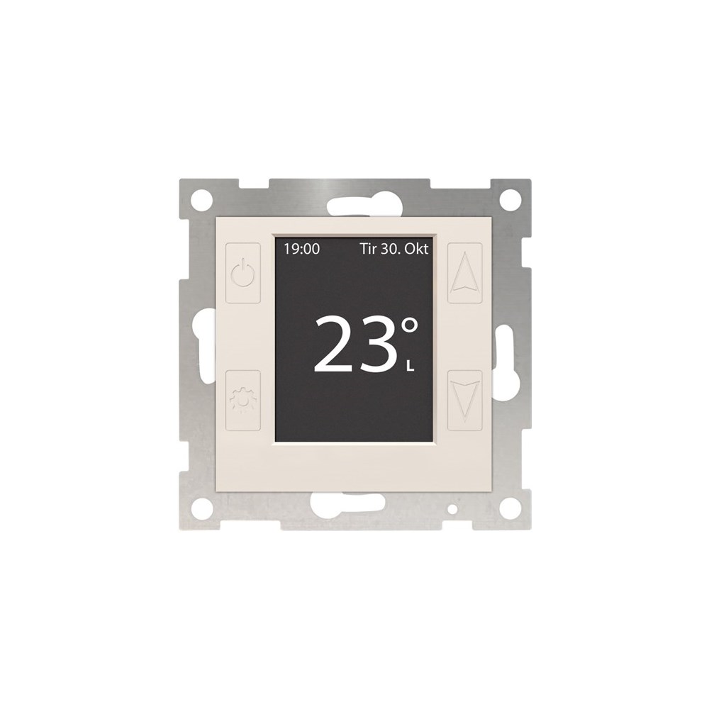 Termostatfront passer produkter med bunnkort art.nr. 11974 og 11975. mTouch One, OP har innebygd radiokommunikasjon for styring via HUB eller andre enheter som kommuniserer med åpen protokoll (ZigBee 3.0).