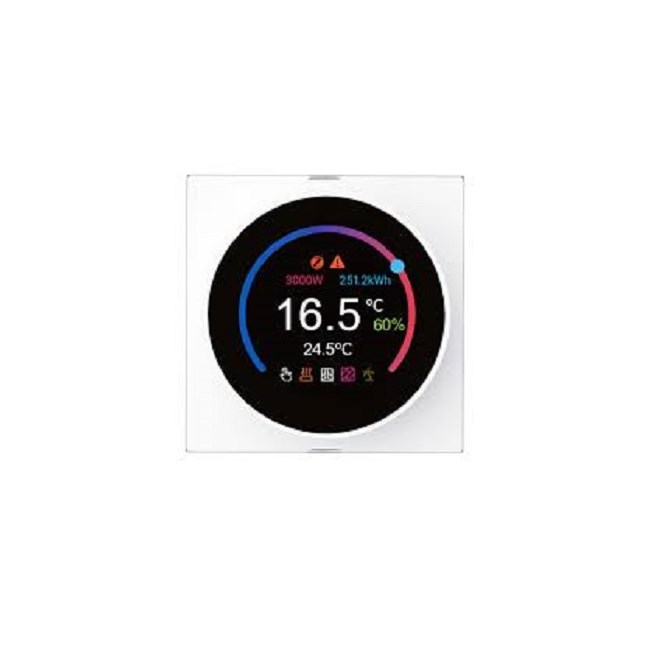 Termostaten opererer på en driftsspenning mellom 220V og 240V AC, med en maksimal belastning på 16A, som gjør den egnet for elektrisk oppvarming. Med trådløs kommunikasjon via Zigbee 3.0 på 2,4 GHz, kan den enkelt integreres i smarthus-systemer. Den er laget av halogenfri polykarbonat og er IP21-klassifisert. Dimensjonene er 84 mm i høyde og bredde, med en innfellingsdybde på 30,05 mm, noe som gjør den kompatibel med standard veggbokser.