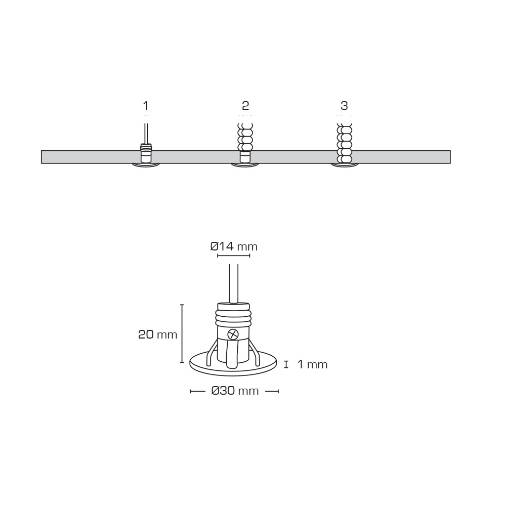 Downlight Lia mini 1,2W 65lm 2700 Kelvin Matt Hvit IP44. Huldiameter Ø14-16 mm.utvendig mål Ø30 mm