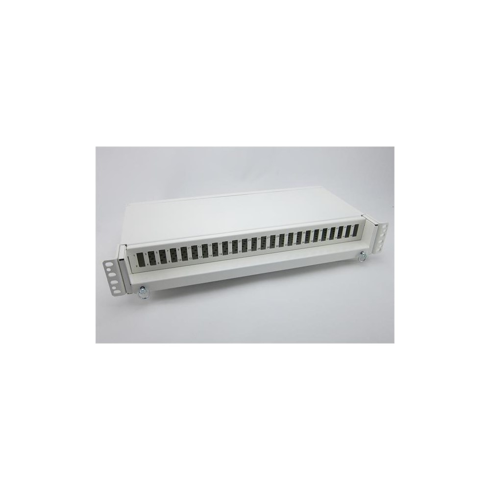 For inntil 48 fiber, 24 stk SC-duplex adaptere. - Utdragbar skuff. - For montering i 19" og metriske systemer. - Dimensjoner 65x440x240 (HxBxD) - Leveres uten adapter. - Følgende montasje element følger med 4stk Burmuttere M6 4stk Montasjeskruer M6x16, krysspor 4stk Plastskiver M6 2stk 12fiber skjøteholdere med plass for 2 skjøtehylser pr spor 6stk Festebøyler for fiberføring