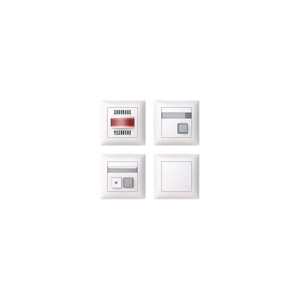 HC/WC settet består av følgende signalprodukter: 1 stk Trafo FLM1000, 1 stk overvåkningsenhet FEH2001, 1 stk trykknapp med snor FAP3002, 1 stk signaltrykknapp FAP2001 for kvittering. Enkle rammer er inkludert i settet.