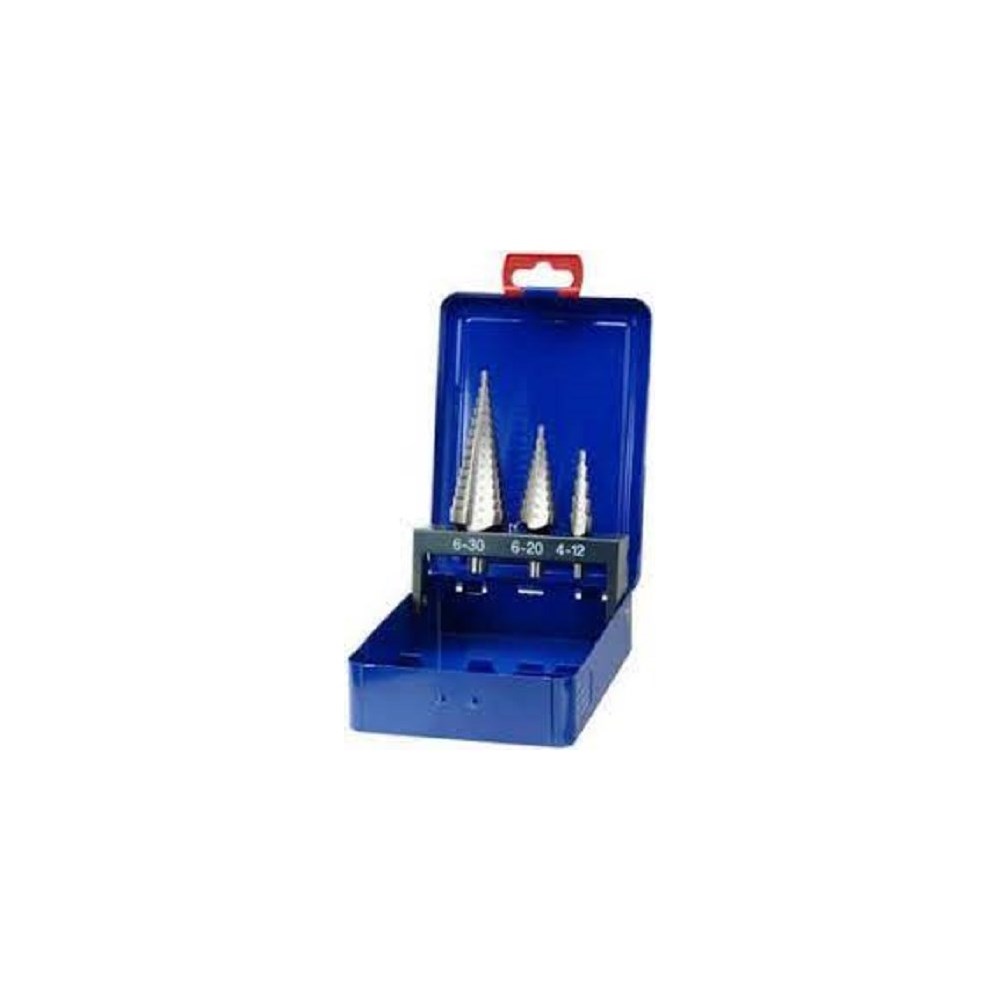 Flerstegbor eske a 3 stk Ø 4-12 mm (9 trinn), 4-20 mm (9 trinn), 6-30 mm (13 trinn)