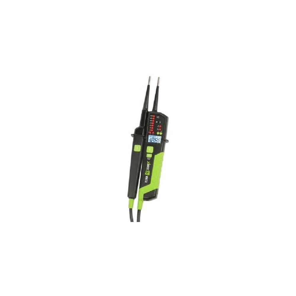 Elma 2100X spenningstester med digitalt display og lysdiodeindikering. Tester 12-690V AC. Målespissene kan endres fra 4 til 2mm i diameter. Elma 2100X har mange ekstra funksjoner som gjennomgangstest med lyd og lys, fasefølgetest og innebygd lykt. Spenningsindikering virker uten batteri. Tilfredsstiller KAT IV 600V.