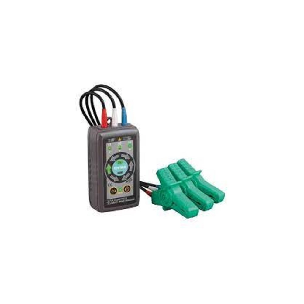Kyoritsu 8035 er en fasefølgetester, som uten elektrisk kontakt viser fasefølge/dreierettning. De tre krokodilleklemmene settes utenpå isoleringen på tre separate faser. Når det er tre riktige og forskjellige faser, viser instrumentet med de store og meget kraftige røde og grønne lysdioder fasefølge/dreierettning. Instrumentet tilfredsstiller KAT IV 600V og er derfor i kombinasjon med de ekstra kraftige LED lysdioder meget velegnet til utendørs bruk. Kyoritsu 8035 tilfredsstiller IEC 61010-1 KAT IV 600V / III 1000V og leveres komplett i veske inkl. batterier og brukerveiledning.