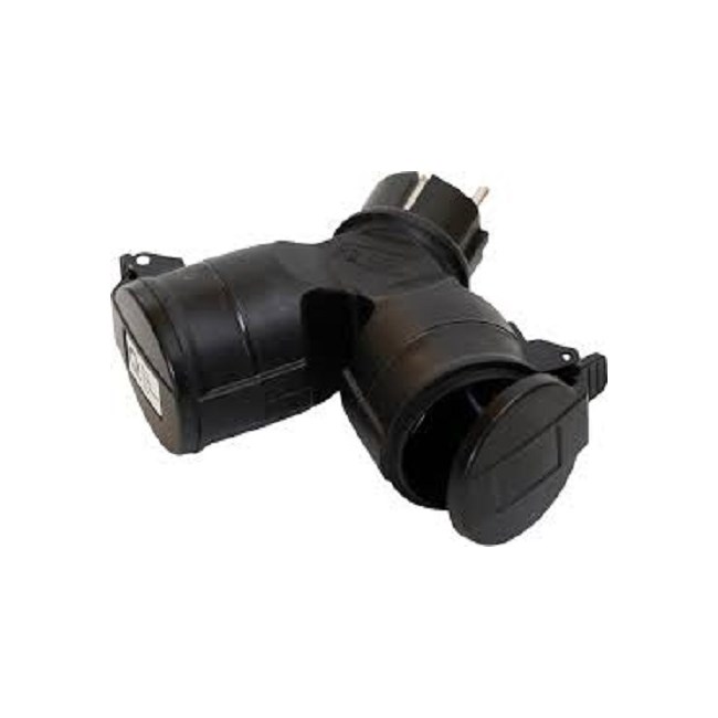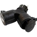 Dobbeltstøpsel utendørs med jord 16A sort IP44 blister